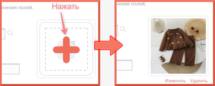 При работе с персональным компьютером изображение товара можно сохранить на жесткий диск с использованием программного обеспечения, предназначенного для создания скриншотов экрана. Также можно использовать штатные средства Windows. После сохранения файла на диске, в карточке товара необходимо нажать на символ «плюс» для активации диалогового окна выбора файла. В указанном диалоговом окне следует выбрать требуемый файл и загрузить изображение в карточку товара. При необходимости, имеется возможность заменить или удалить выбранное ранее изображение.